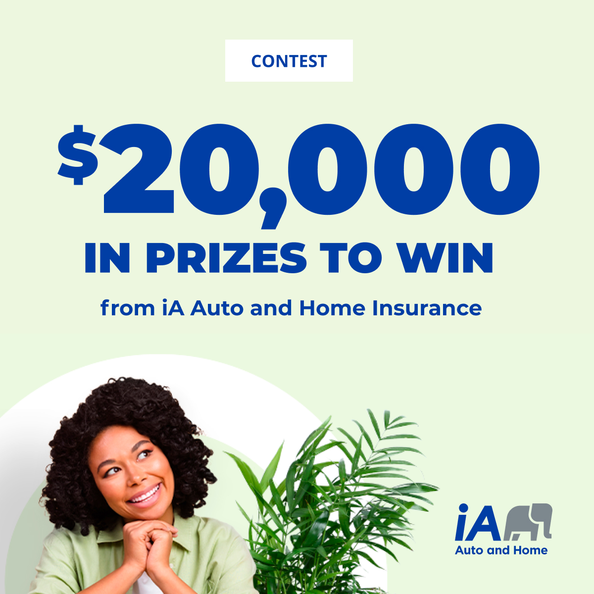 Enter our iA Auto and Home Insurance contest just by requesting a quote. Not only will you be entered for a chance to be one of our three winners, but you could save big on your insurance. Our clients have saved $565 on average.